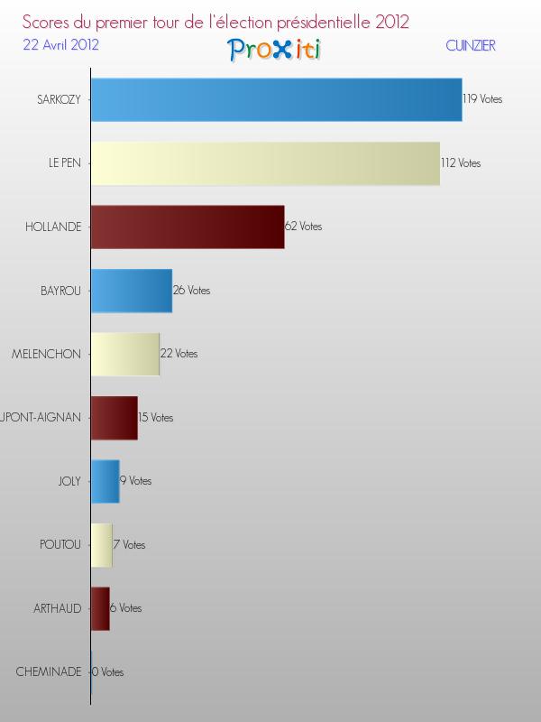 Résultats des votes à l'élection du Président de la République Française 2012 à Cuinzier