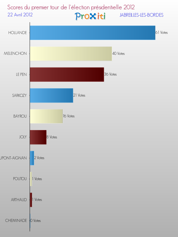 Résultats des votes à l'élection du Président de la République Française 2012 à Jabreilles-les-Bordes