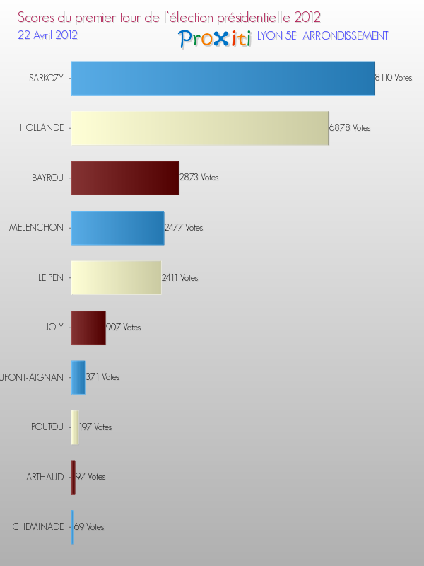 Résultats des votes à l'élection du Président de la République Française 2012 à Lyon 5e Arrondissement