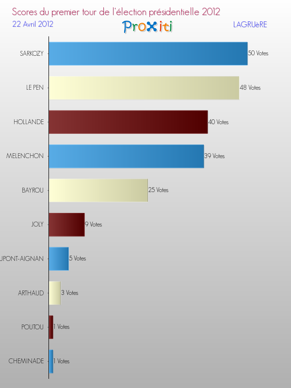 Résultats des votes à l'élection du Président de la République Française 2012 à Lagruère