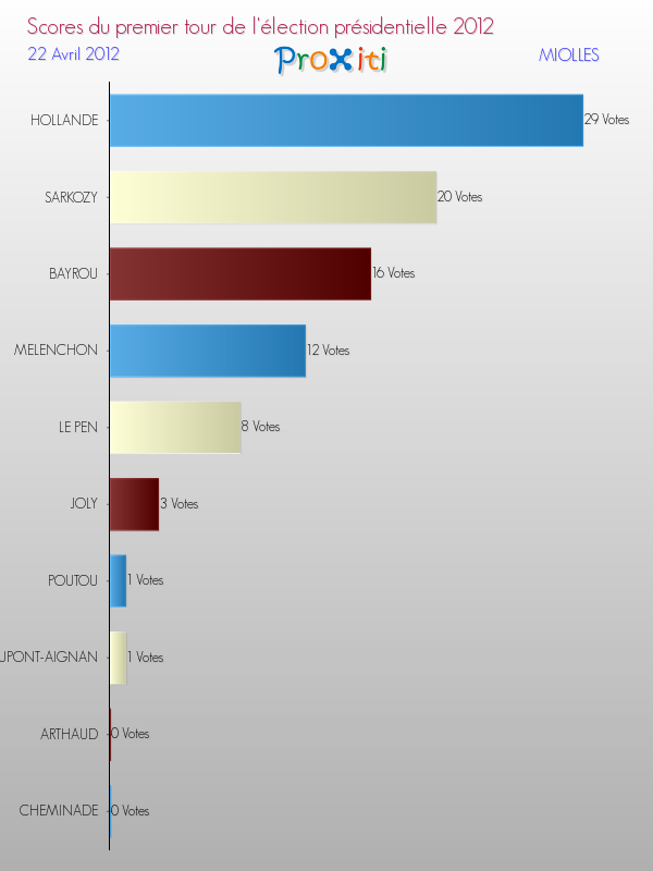 Résultats des votes à l'élection du Président de la République Française 2012 à Miolles