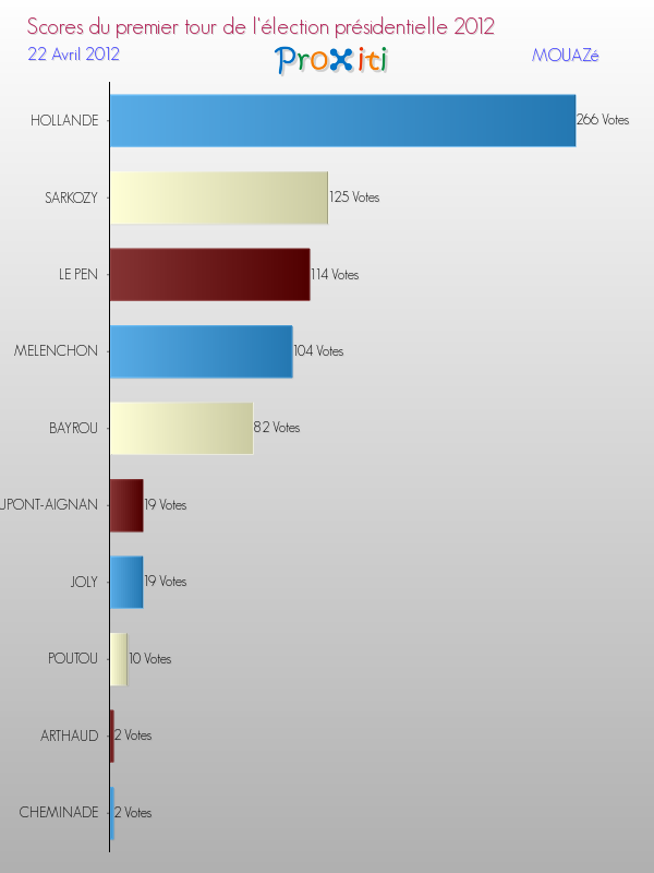 Résultats des votes à l'élection du Président de la République Française 2012 à Mouazé