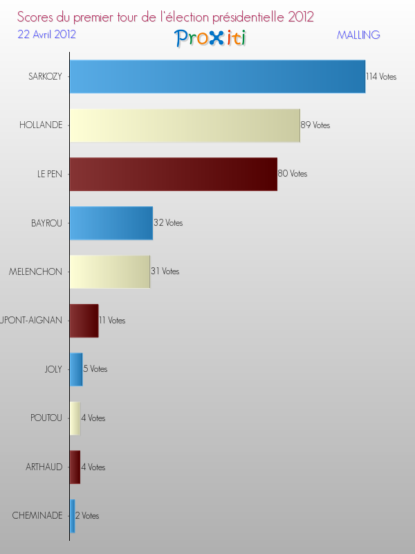 Résultats des votes à l'élection du Président de la République Française 2012 à Malling