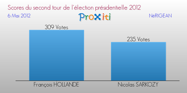 Résultats des votes à l'élection du Président de la République Française 2012 à Nérigean
