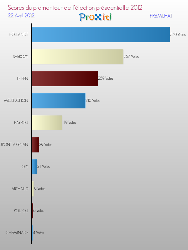 Résultats des votes à l'élection du Président de la République Française 2012 à Prémilhat