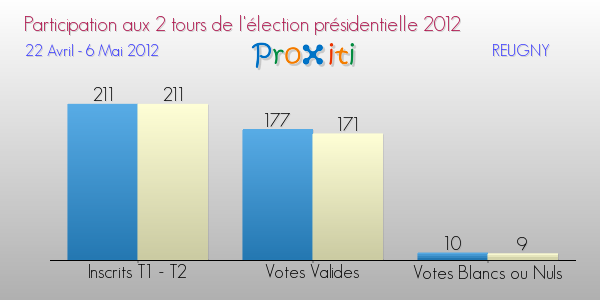 Sur 211 personnes inscrites au 1er tour à Reugny, 187 se sont déplacées pour mettre leur bulletin dans l'urne, et 24 ne sont pas venues voter.