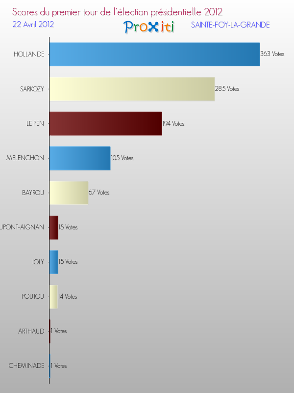 Résultats des votes à l'élection du Président de la République Française 2012 à Sainte-Foy-la-Grande
