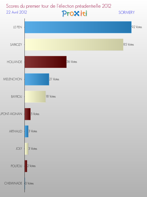 Résultats des votes à l'élection du Président de la République Française 2012 à Sormery