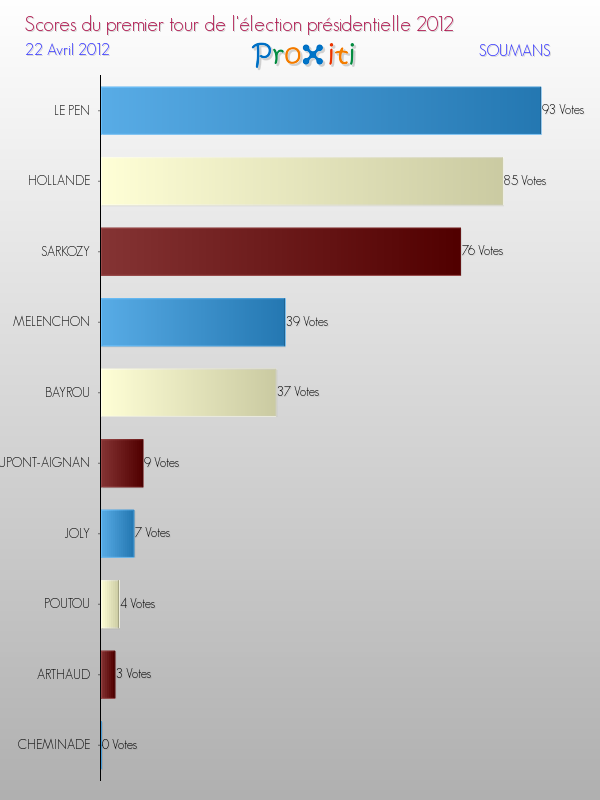 Résultats des votes à l'élection du Président de la République Française 2012 à Soumans