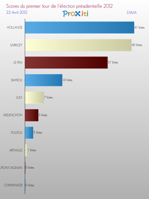 Résultats des votes à l'élection du Président de la République Française 2012 à Syam