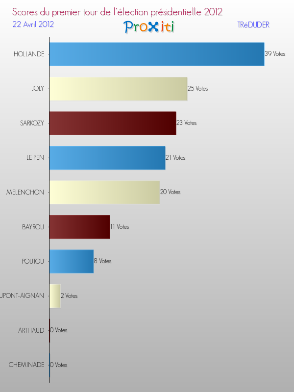 Résultats des votes à l'élection du Président de la République Française 2012 à Tréduder