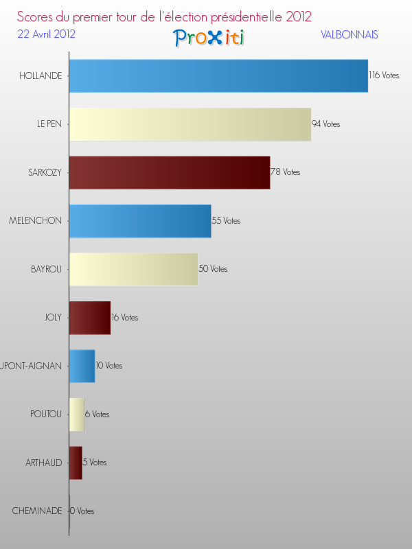 Résultats des votes à l'élection du Président de la République Française 2012 à Valbonnais