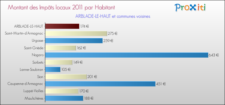 A noter : la valeur moyenne des impôts locaux dans les communes françaises similaires à Arblade-le-Haut était de 387 € par habitant, en 2011.