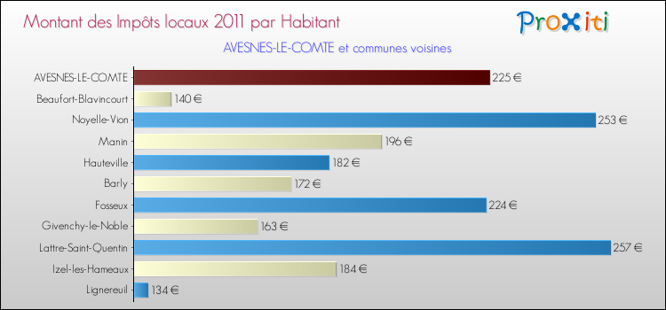 A noter : la valeur moyenne des impôts locaux dans les communes françaises similaires à Avesnes-le-Comte était de 334 € par habitant, en 2011.