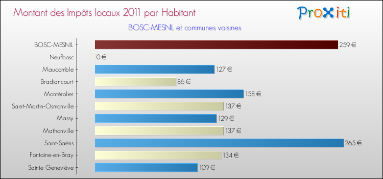 A noter : la valeur moyenne des impôts locaux dans les communes françaises similaires à Bosc-Mesnil était de 264 € par habitant, en 2011.