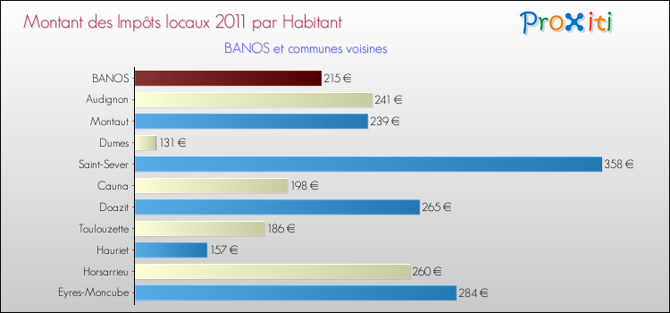 A noter : la valeur moyenne des impôts locaux dans les communes françaises similaires à Banos était de 240 € par habitant, en 2011.