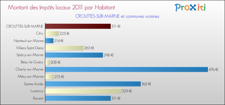 Par rapport aux 668 habitants de Crouttes-sur-Marne, en 2011 cela représente 311 € par habitant, soit : 1244 € par an pour une famille de 4 personnes.