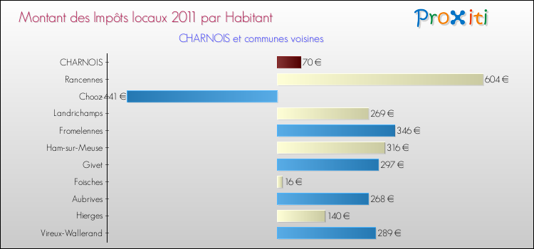 A Charnois, les impôts locaux par habitant ont donc augmentés de 0 % entre 2000 et 2011.