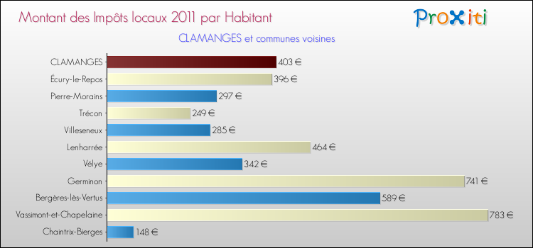 A Clamanges, les impôts locaux par habitant ont donc augmentés de 61.85 % entre 2000 et 2011.