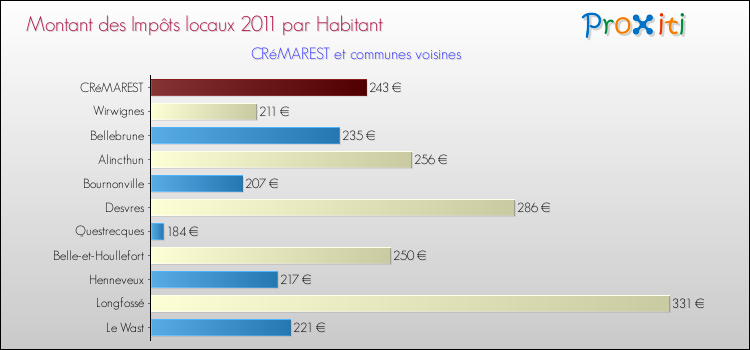 A noter : la valeur moyenne des impôts locaux dans les communes françaises similaires à Crémarest était de 269 € par habitant, en 2011.