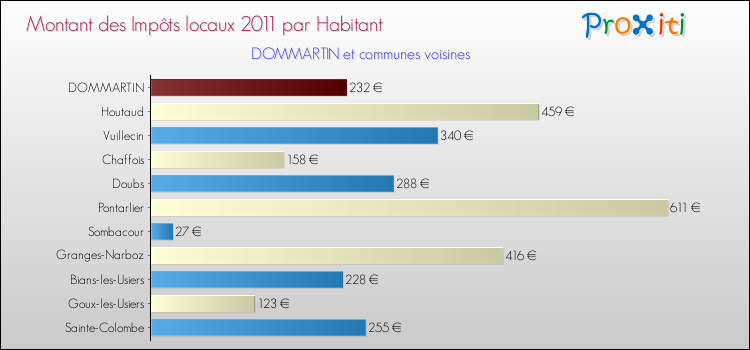A Dommartin, les impôts locaux par habitant ont donc augmentés de 157.78 % entre 2000 et 2011.