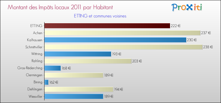 A noter : la valeur moyenne des impôts locaux dans les communes françaises similaires à Etting était de 269 € par habitant, en 2011.