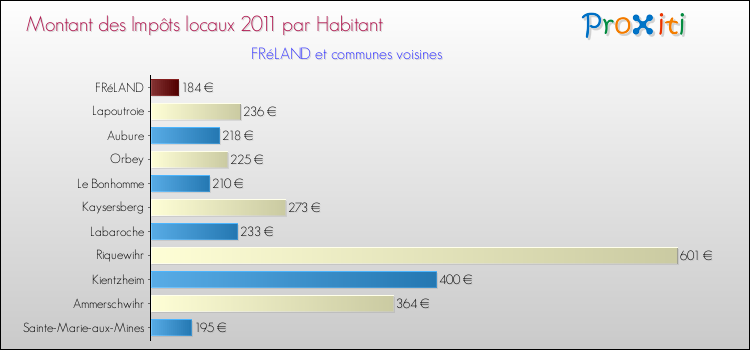 A noter : la valeur moyenne des impôts locaux dans les communes françaises similaires à Fréland était de 269 € par habitant, en 2011.