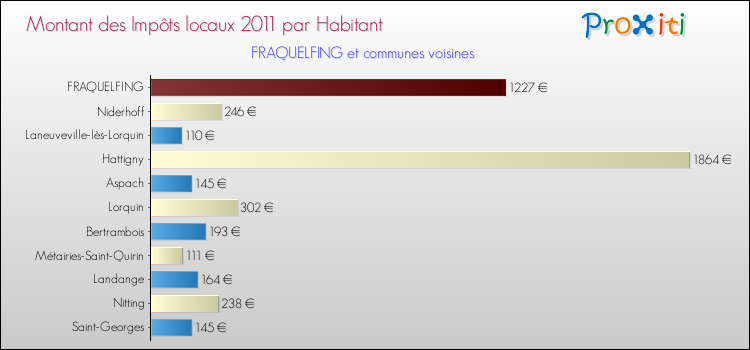 A Fraquelfing, les impôts locaux par habitant ont donc augmentés de 1360.71 % entre 2000 et 2011.