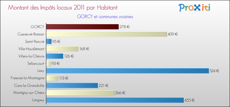 A noter : la valeur moyenne des impôts locaux dans les communes françaises similaires à Gorcy était de 440 € par habitant, en 2011.