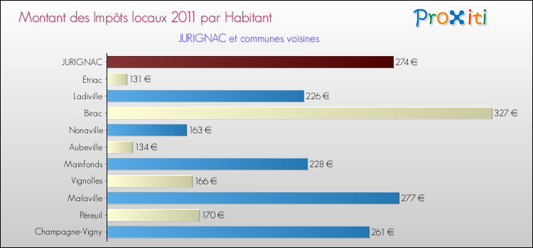 A Jurignac, les impôts locaux par habitant ont donc augmentés de 75.64 % entre 2000 et 2011.
