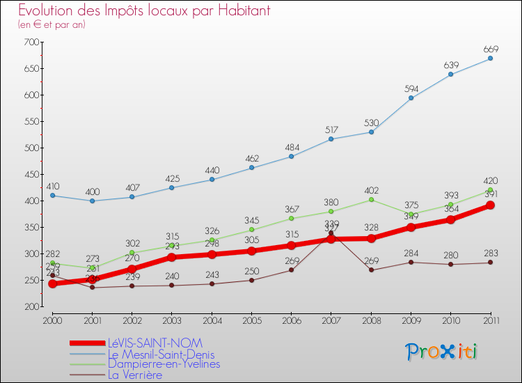 Par rapport aux 1 758 habitants de Lévis-Saint-Nom, en 2011 cela représente 391 € par habitant, soit : 1564 € par an pour une famille de 4 personnes.