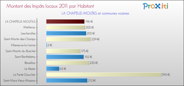 Pendant la même période, les communes françaises similaires à La Chapelle-Moutils, ont vu leurs impôts locaux par habitant augmenter de 20 % en moyenne entre 2000 et 2011.