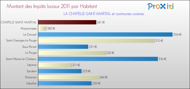 A noter : la valeur moyenne des impôts locaux dans les communes françaises similaires à La Chapelle-Saint-Martial était de 240 € par habitant, en 2011.