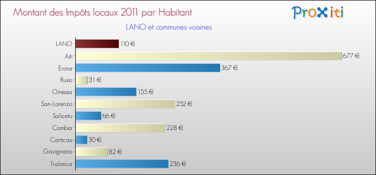 A noter : la valeur moyenne des impôts locaux dans les communes françaises similaires à Lano était de 386 € par habitant, en 2011.