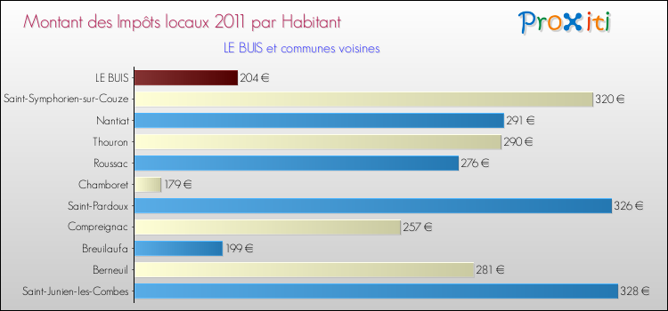 A noter : la valeur moyenne des impôts locaux dans les communes françaises similaires à Le Buis était de 240 € par habitant, en 2011.