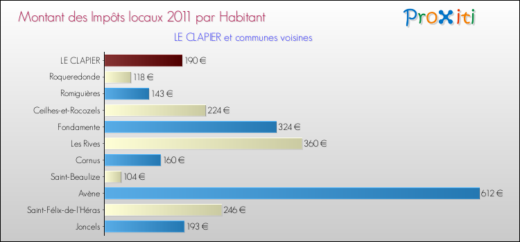 A noter : la valeur moyenne des impôts locaux dans les communes françaises similaires à Le Clapier était de 240 € par habitant, en 2011.