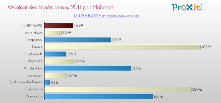 A noter : la valeur moyenne des impôts locaux dans les communes françaises similaires à Lindre-Basse était de 238 € par habitant, en 2011.