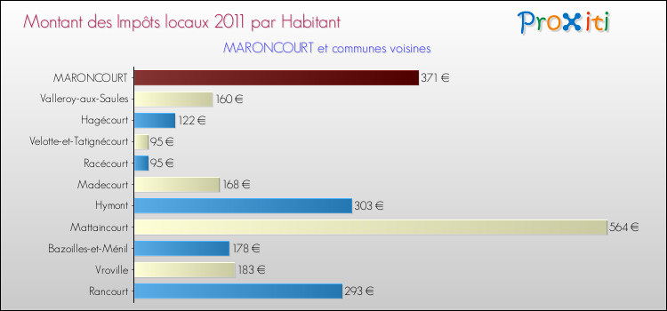 Comparaison des impôts locaux par habitant pour MARONCOURT et les communes voisines