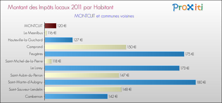 A noter : la valeur moyenne des impôts locaux dans les communes françaises similaires à Montcuit était de 238 € par habitant, en 2011.