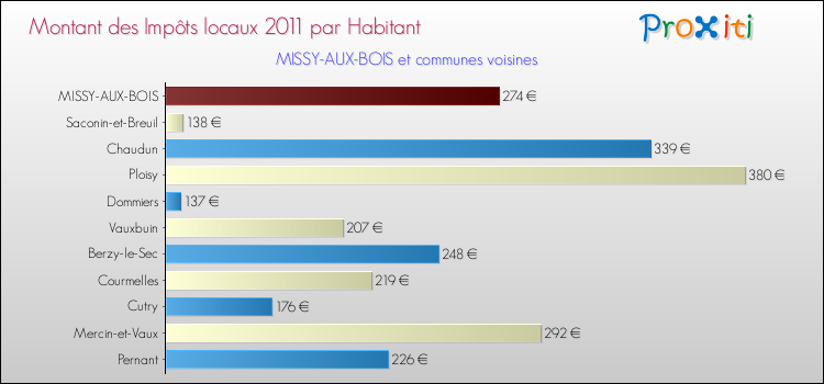 A noter : la valeur moyenne des impôts locaux dans les communes françaises similaires à Missy-aux-Bois était de 240 € par habitant, en 2011.