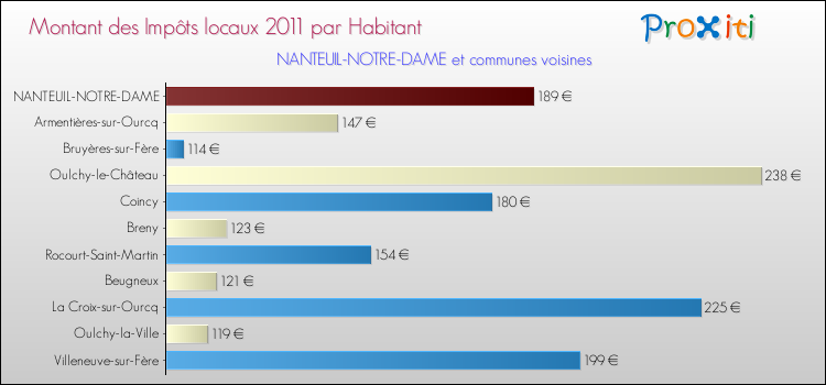 A noter : la valeur moyenne des impôts locaux dans les communes françaises similaires à Nanteuil-Notre-Dame était de 238 € par habitant, en 2011.
