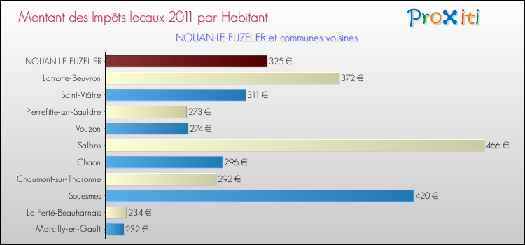 A noter : la valeur moyenne des impôts locaux dans les communes françaises similaires à Nouan-le-Fuzelier était de 334 € par habitant, en 2011.