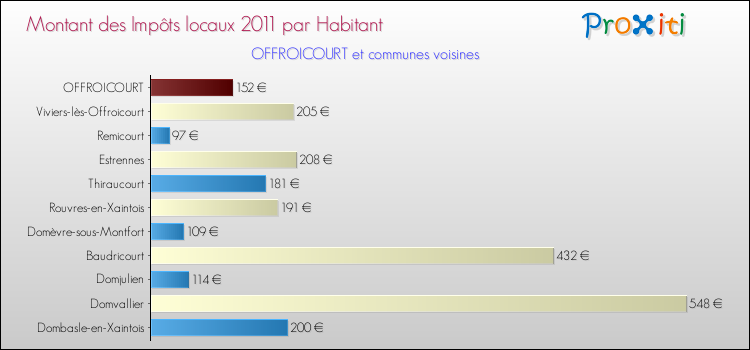 A noter : la valeur moyenne des impôts locaux dans les communes françaises similaires à Offroicourt était de 238 € par habitant, en 2011.
