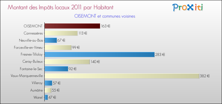 Comparaison des impôts locaux par habitant pour OISEMONT et les communes voisines