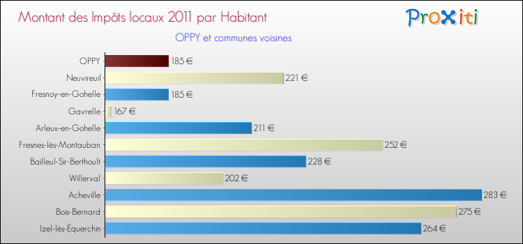 A noter : la valeur moyenne des impôts locaux dans les communes françaises similaires à Oppy était de 234 € par habitant, en 2011.