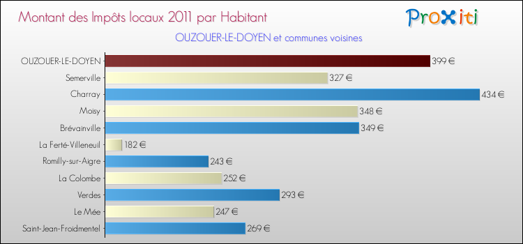 A noter : la valeur moyenne des impôts locaux dans les communes françaises similaires à Ouzouer-le-Doyen était de 240 € par habitant, en 2011.