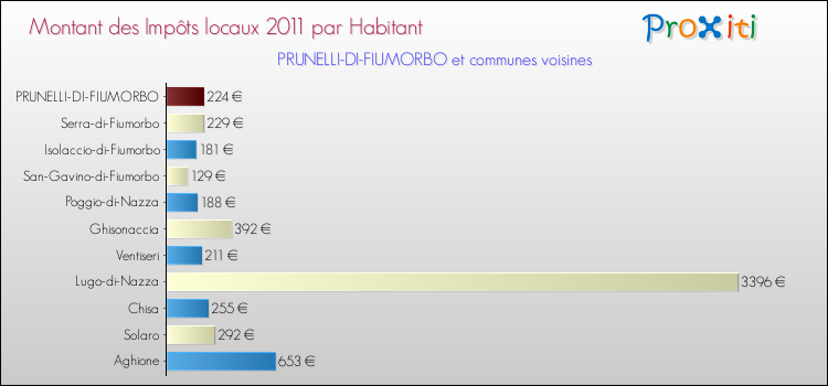 Vous trouverez ci-dessous des graphiques qui vous permettent de comparer le niveau d'impôts locaux de Prunelli-di-Fiumorbo avec les communes voisines.