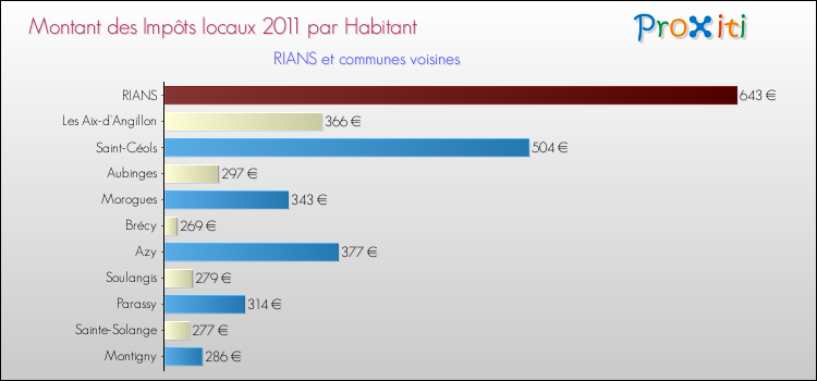 A Rians, les impôts locaux par habitant ont donc augmentés de 52.73 % entre 2000 et 2011.