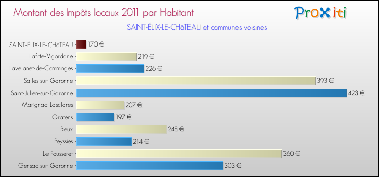 A noter : la valeur moyenne des impôts locaux dans les communes françaises similaires à Saint-Élix-le-Château était de 269 € par habitant, en 2011.