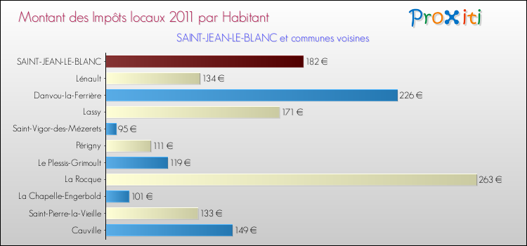 A noter : la valeur moyenne des impôts locaux dans les communes françaises similaires à Saint-Jean-le-Blanc était de 234 € par habitant, en 2011.
